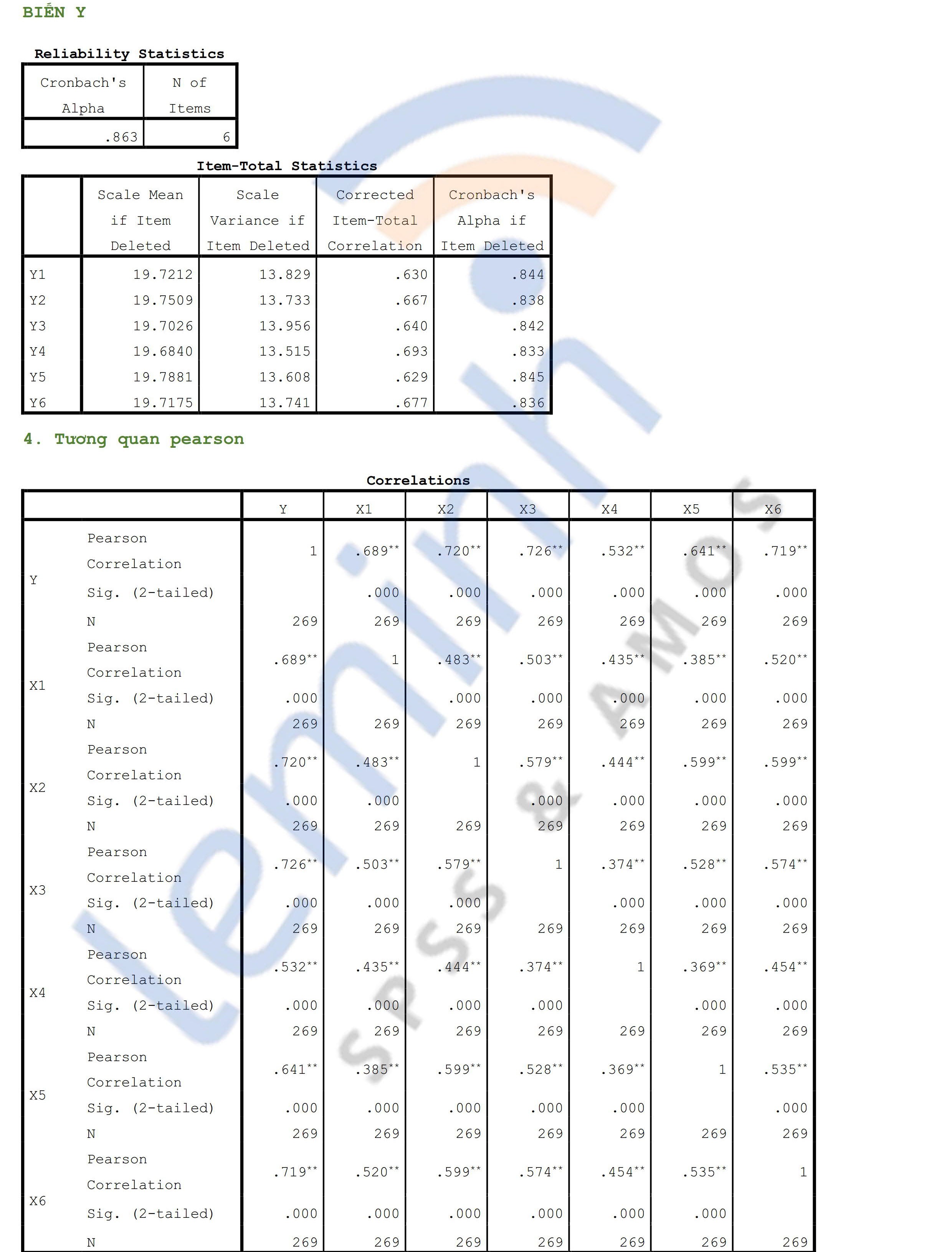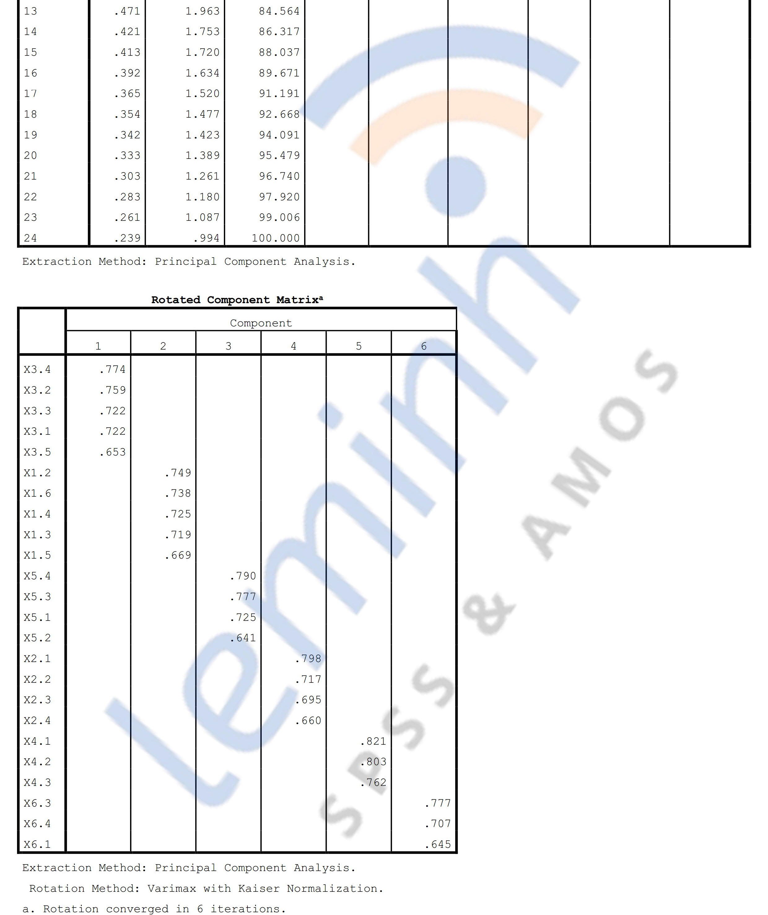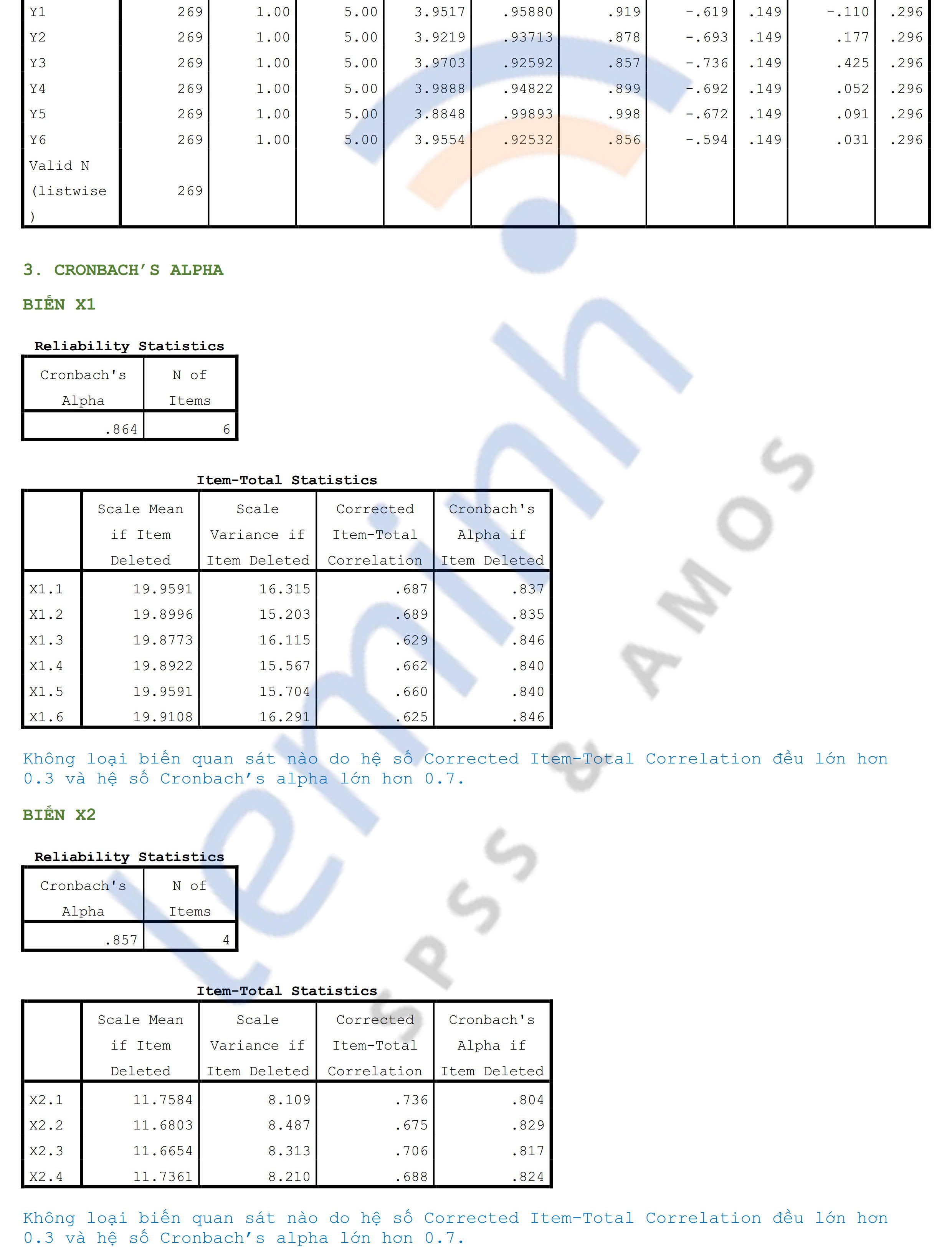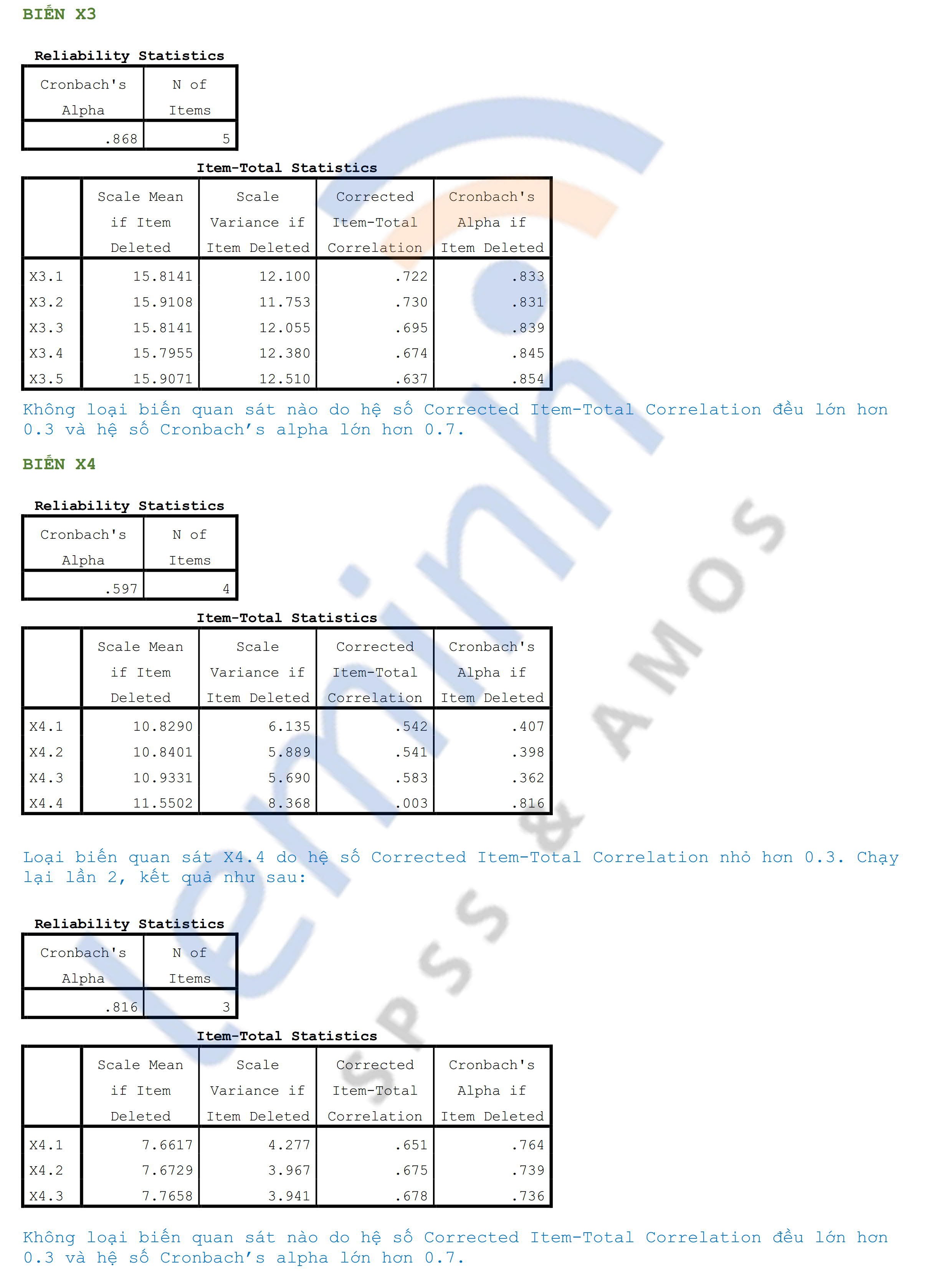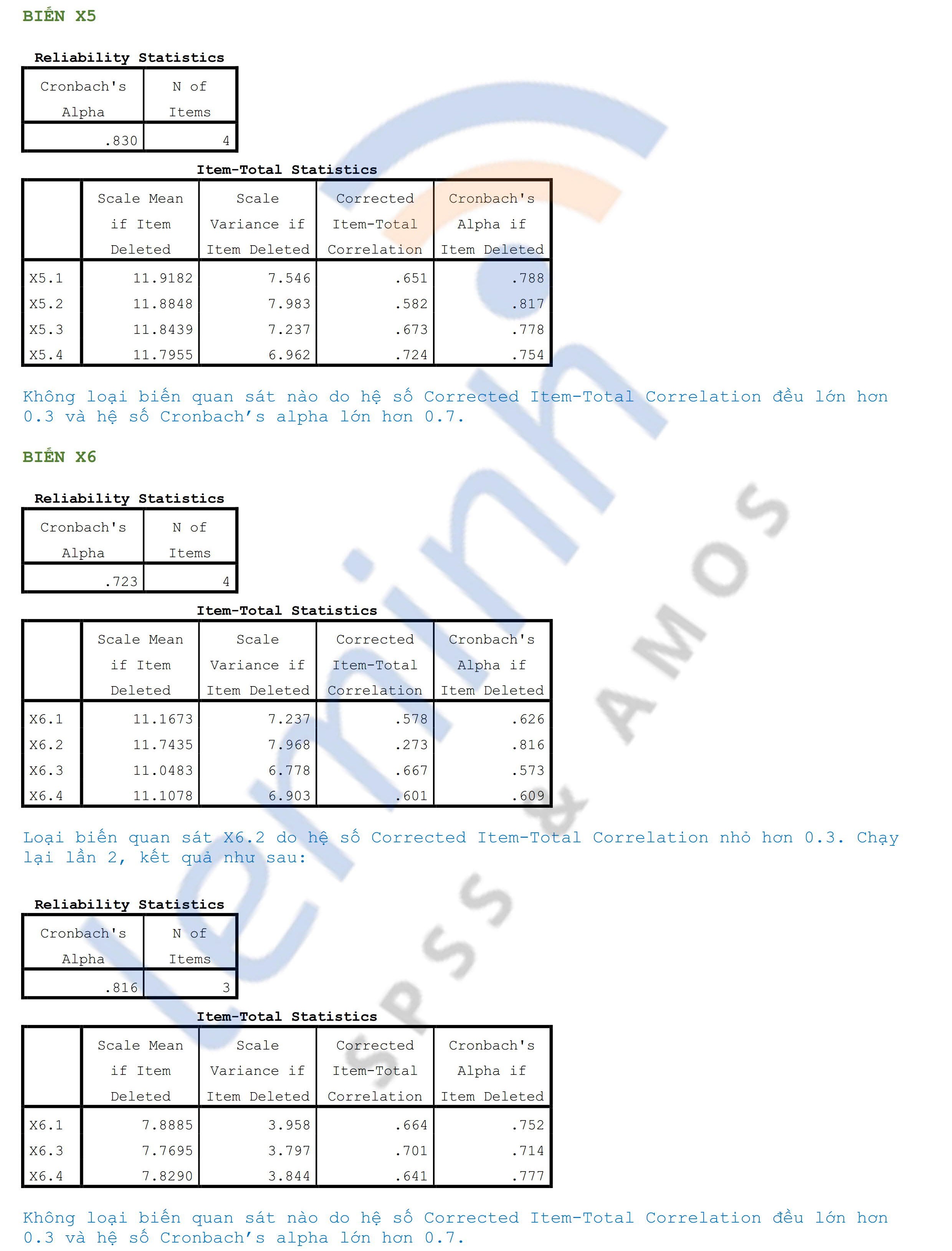 - Cronbach’s Alpha: Remove variables X4.4, X6.2 because Corrected Item-Total Correlation is less than 0.3.