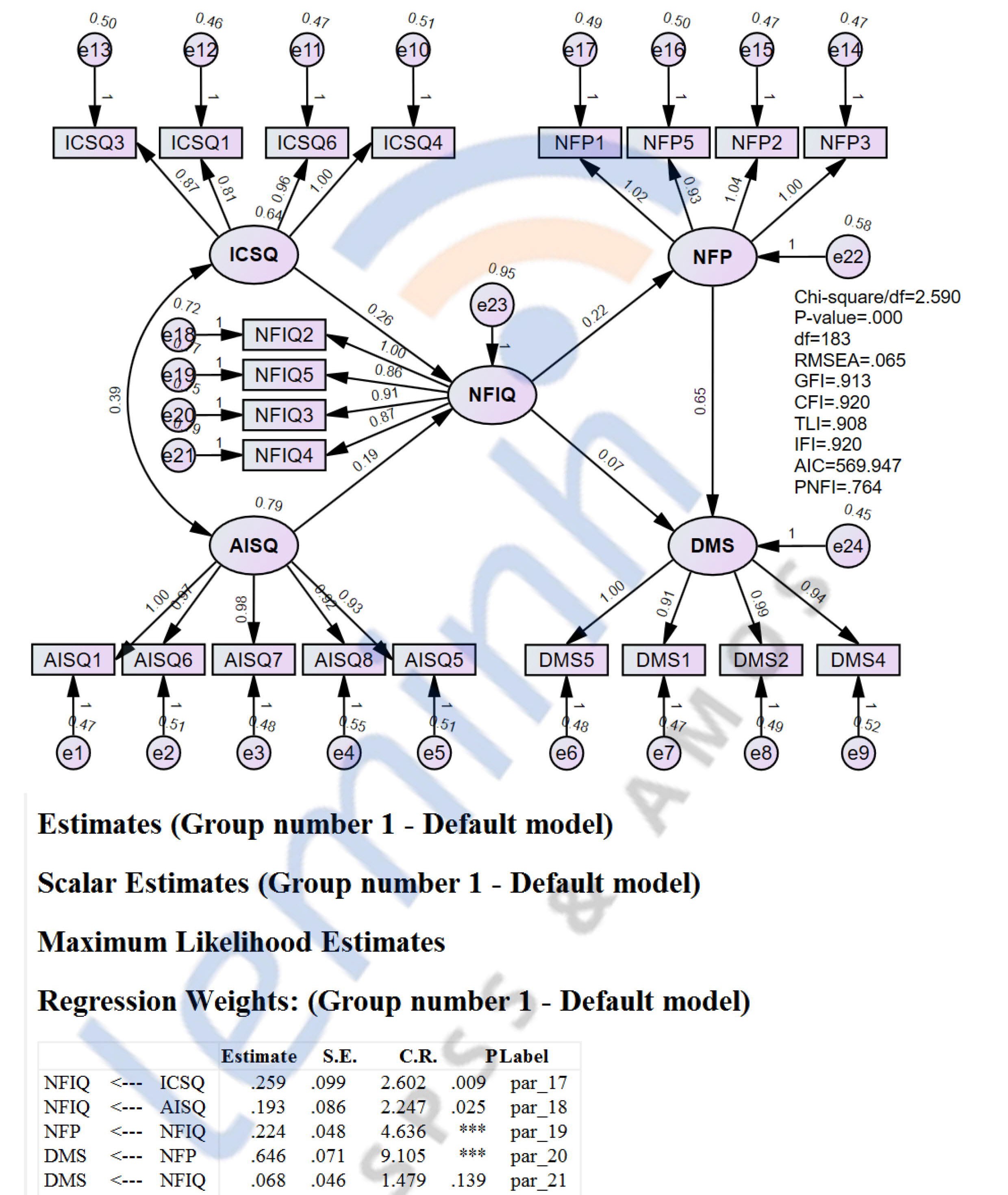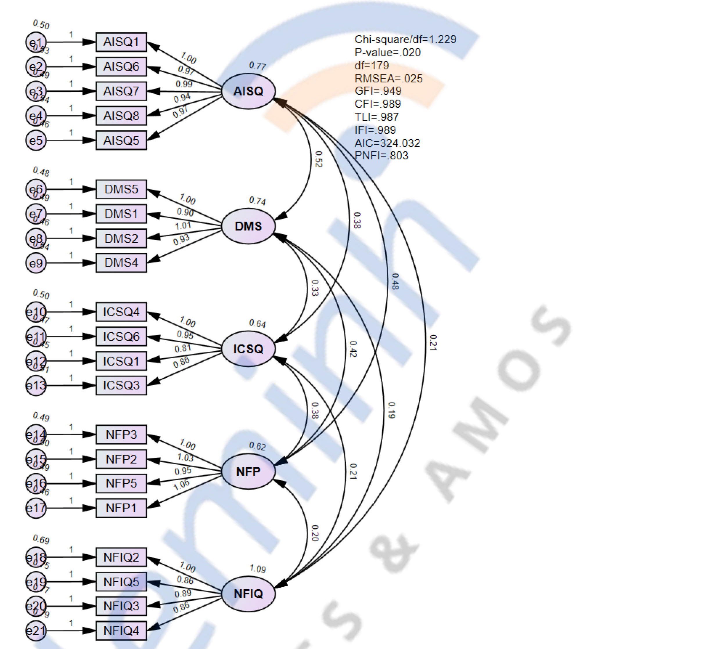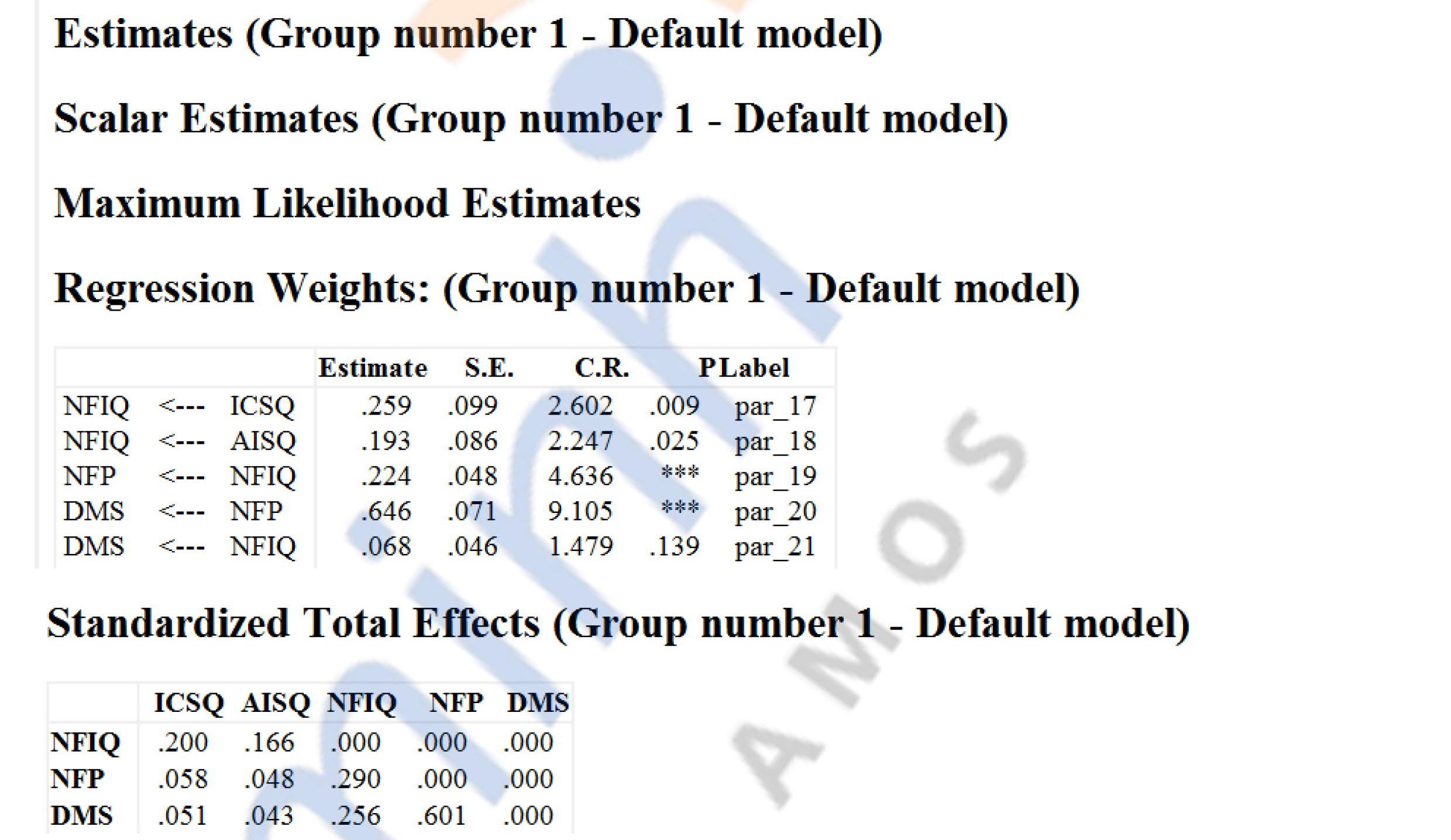 - Model running CB SEM with AMOS: Gives good results. Hypotheses H1, H2, H3 and H5 are all supported, hypothesis H4 is not supported. This result matches the results of Monteiro et al.(2022).