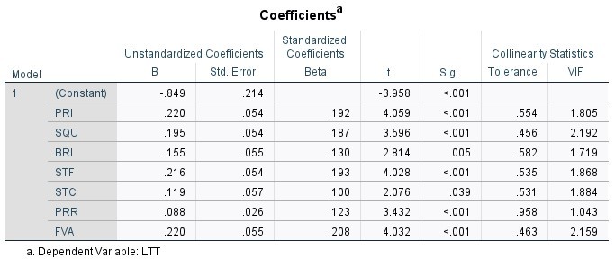 - Multiple regression model: All hypotheses are supported due to the Sig level of significance. ≤ 5%.